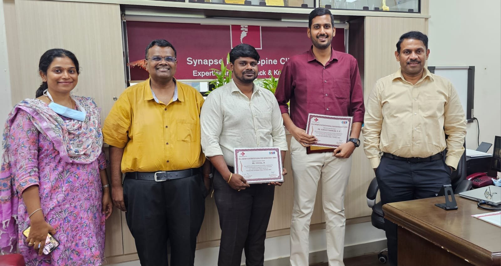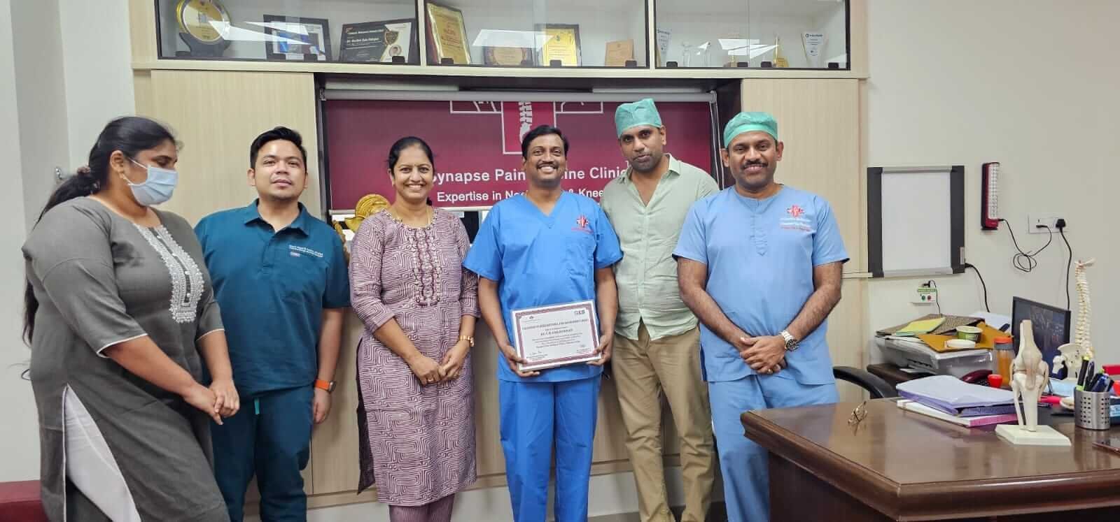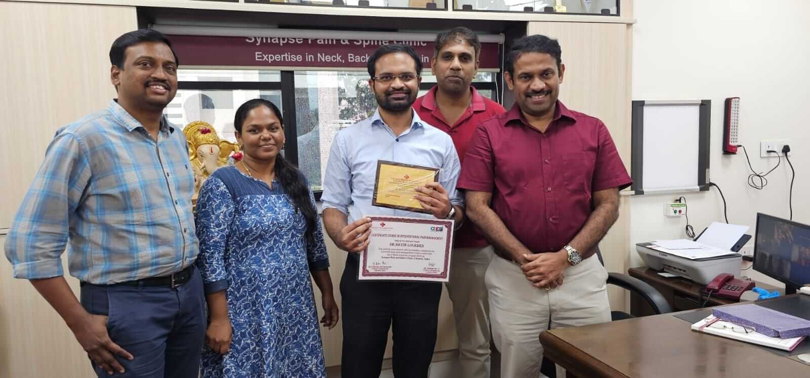 We offer Fellowship in Interventional Pain Management (FIPM) courses at Synapse Pain Academy for Post-Graduate doctors interested in pursuing pain medicine as a career. The course intends to provide hands-on experience at a multi-disciplinary, musculoskeletal and chronic pain management centre. Comprehensive knowledge of pain medicine, patient evaluation, hand-on experience in image-guided pain procedures, regenerative pain procedures, endoscopic spine procedures and advanced pain techniques will be provided. The course would essentially be an internship under the guidance of Dr Karthic Natarajan and team.